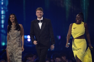 Maya Jama, Roman Kemp and Clara Amfo hosting the 2024 BRIT Awards at The O2 Arena, London on 2 March 2024