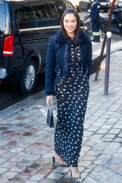gwiazdy przybywaja na pokaz mody damskiej „Stella McCartney” na jesień/zimę 2024/2025 w Parc André Citroën podczas paryskiego tygodnia mod
