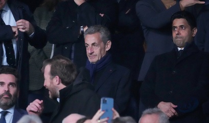 Les célébrités dans les tribunes lors du match de Ligue Des Champions 2024 (LDC) "Real Sociedad - PSG (1-2)" au stade d'Anoeta