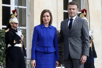 prezydent Francji Emmanuel Macron spotkal sie z prezydentem Moldawii Maia Sandu. 6