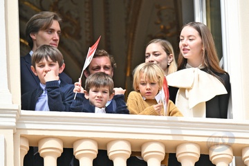 No Tabloïd - Le prince Albert II de Monaco fête son anniversaire (66 ans) avec la princesse Charlène de Monaco et leurs enfants Le prince Jacques de Monaco et la princesse Gabriella de Monaco sur la Place du Palais princier à Monaco
