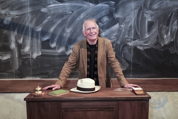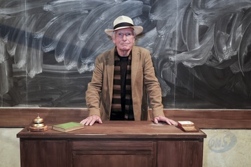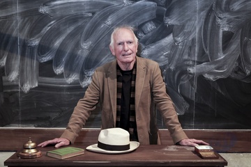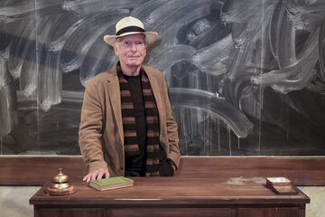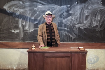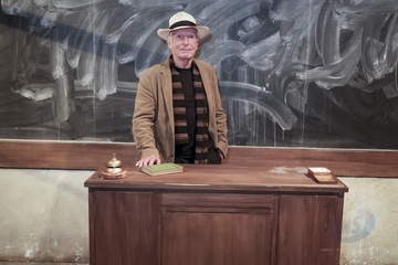 Peter Weir pozuje przed przedstawiem sztuki „Krąg zaginionych poetów” w teatrze Antoine w Paryżu