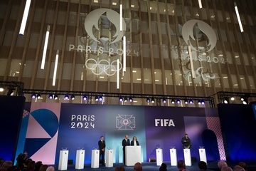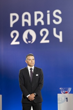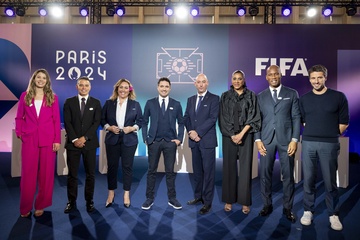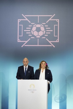 Tirage final du tournoi olympique de football au siège de Paris 2014 le 20 mars 2024 à Saint-Denis