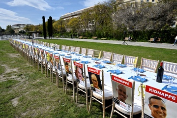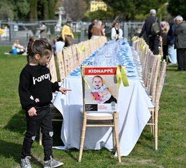 W Nicei ustawiono pusty stół, aby złożyć hołd zakładnikom „nadal przetrzymywanym w Gazie” z okazji żydowskiego święta Purim