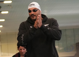 Florent Manaudou lors de la compétition de natation "Giant Open 2024" au Dôme à Saint-Germain-en-Laye