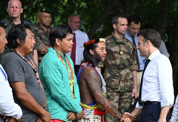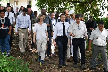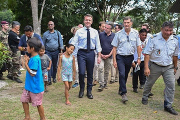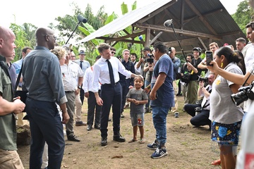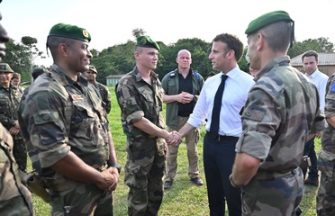 Prezydent Emmanuel Macron spotyka się z mieszkańcami Gujany i z 3. REI (zagranicznym pułkiem piechoty 22