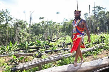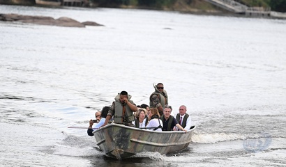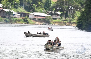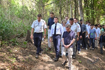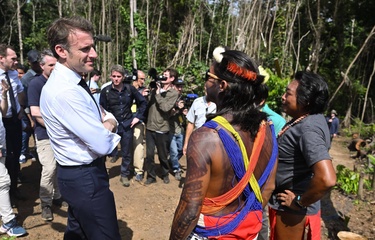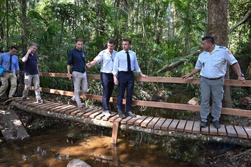 Le président Emmanuel Macron et sa délégation, en déplacement en Guyane, rencontrent les habitants de Camopi avec le 3ème REI (régiment étranger d'infanterie)