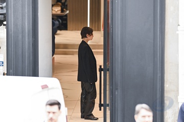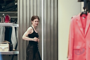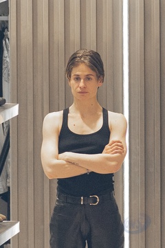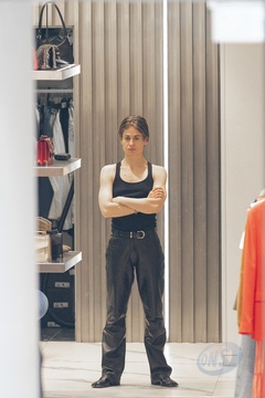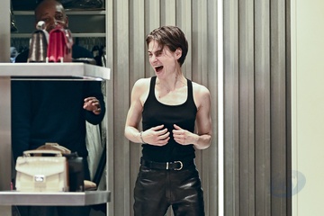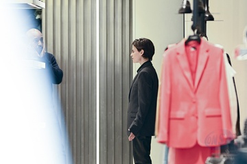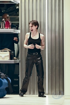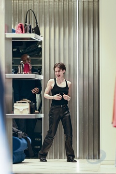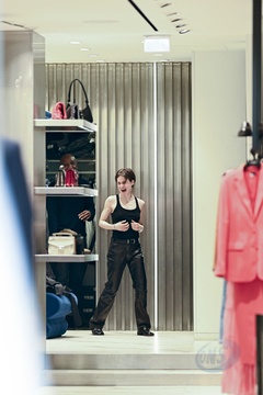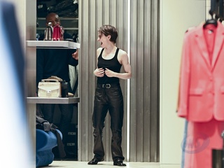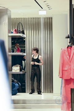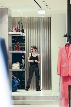 Redcar (Christine and the Queens / Chris) wykonuje przymiarki w sklepie „The Kooples” w Paryżu