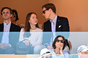 Książę Monako Albert II i księżna Aleksandra Hanoweru na turnieju tenisowym Rolex Monte-Carlo Masters w Roquebrune-Cap-Martin