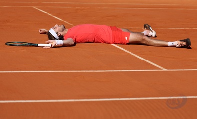 Stéfanos Tsitsipas cieszy sie po wygraniu Masters 1000 de Monte-Carlo à Roquebrune-Cap-Martin