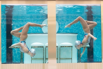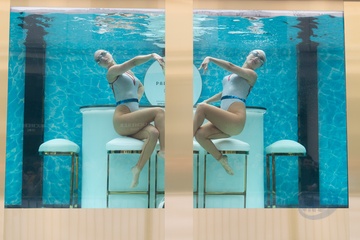 Synchronised Swimmers Promote 100 Days to Paris Olympics at Covent Garden, London