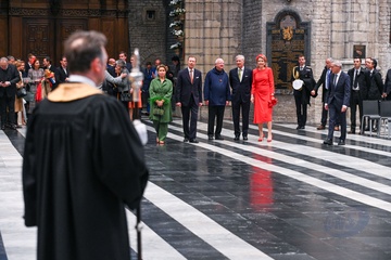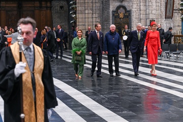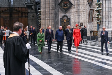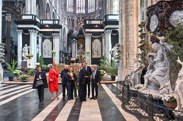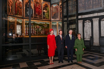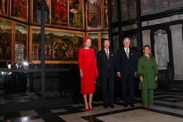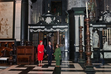 Le roi Philippe et la reine Mathilde de Belgique, ainsi que le Grand-Duc Henri et la Grande Duchesse Maria Teresa de Luxembourg, visitent la cathédrale de Saint Bavon à Gand