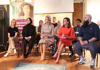 La reine Maxima des pays-Bas et la reine Letizia d'Espagne lors d'une visite au Festival du film espagnol d'Amsterdam (AFF) au LAB6