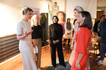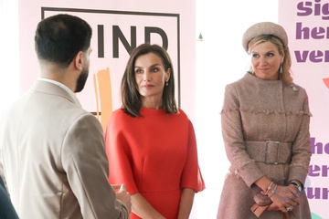 Królowa Holandii Maxima i królowa Hiszpanii Letizia podczas wizyty na Festiwalu Filmów Hiszpańskich w Amsterdamie (AFF) w LAB6