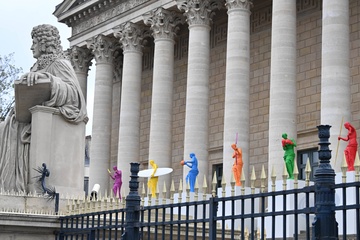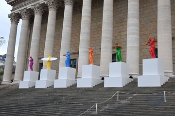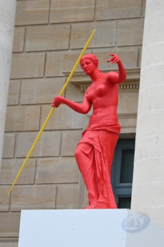 Sześć olimpijskich statuetek Wenus z Milo zainstalowanych przed Zgromadzeniem Narodowym w Paryżu