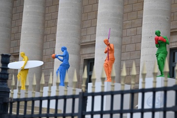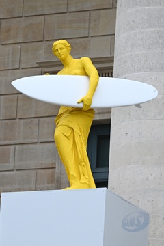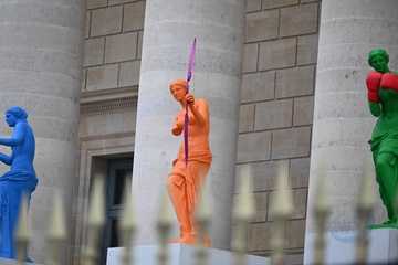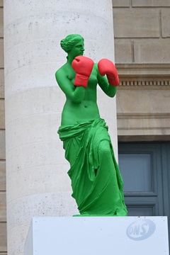 PARIS2024 : Six statuettes olympiques de la Venus de Milo installées devant l'Assemblée nationale à Paris