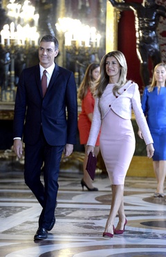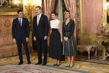 Le roi Felipe VI et la reine Letizia d'Espagne donnent une réception au palais royal à l'occasion de l'ouverture de la "Cop25" à Madrid