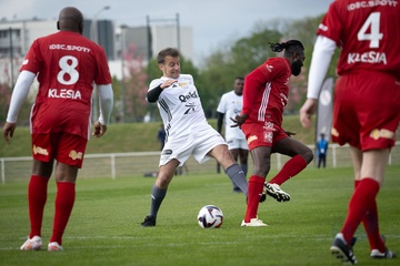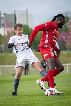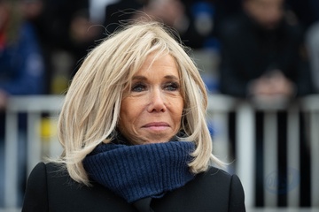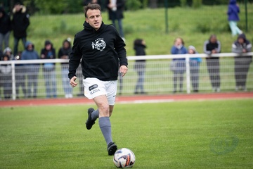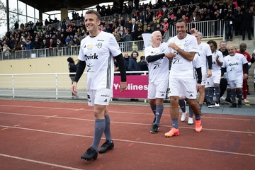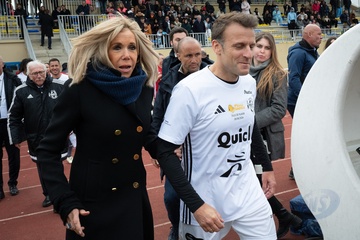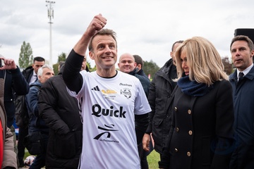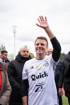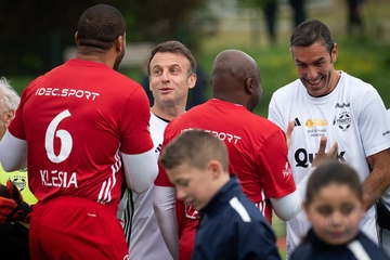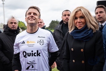 Prezydent Emmanuel Macron i jego żona Pierwsza Dama Brigitte Macron podczas charytatywnego meczu piłki nożnej Variétés club de France 25