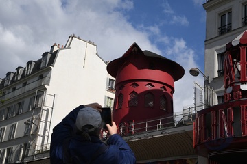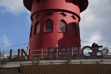 Moulin Rouge w Paryżu, poranek po upadku skrzydeł młyna i jego litery „MOU”