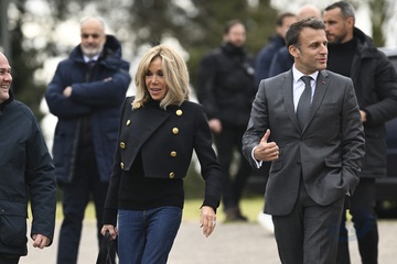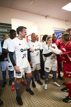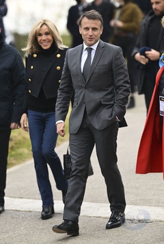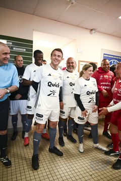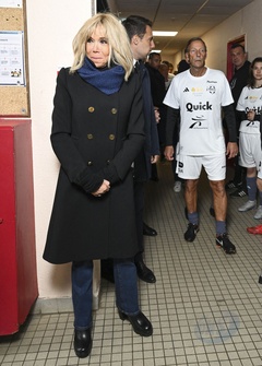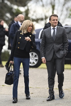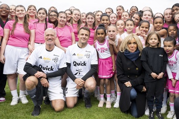 Emmanuel Macron i jego żona Brigitte podczas meczu charytatywnego z Variétés Club de France 21