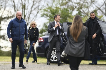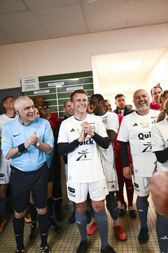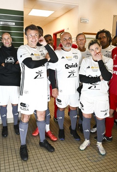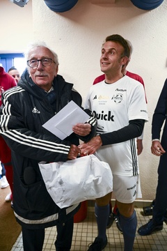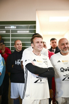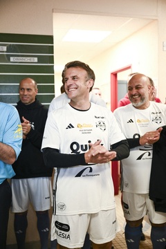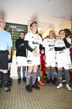 Exclusif - No Web - Le président Emmanuel Macron et sa femme Brigitte lors du match de charité avec le Variétés Club de France au profit des Pièces Jaunes à Plaisir (Emmanuel Macron)