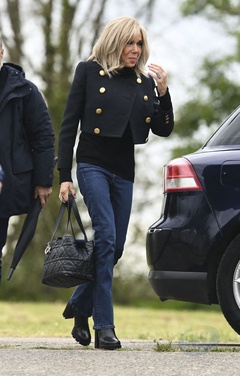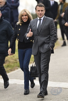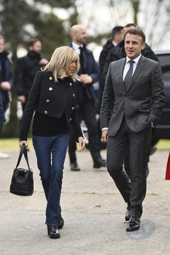 Exclusif - No Web - Le président Emmanuel Macron et sa femme Brigitte lors du match de charité avec le Variétés Club de France au profit des Pièces Jaunes à Plaisir (Emmanuel Macron Brigitte)
