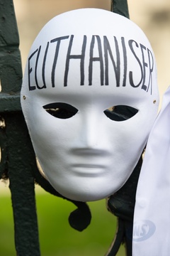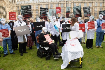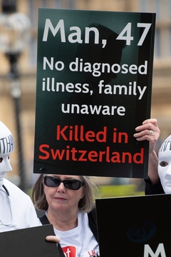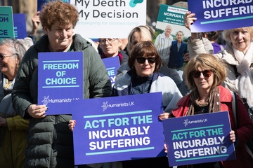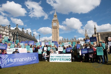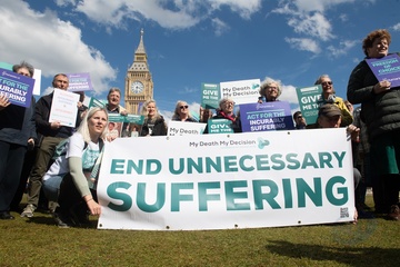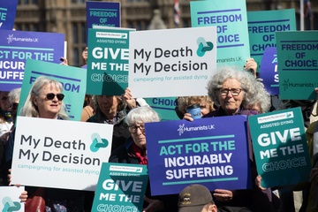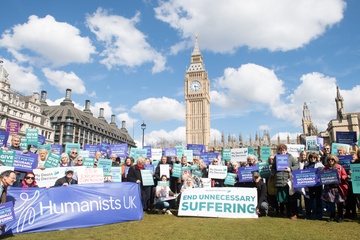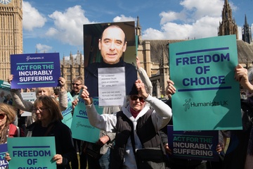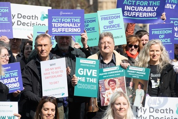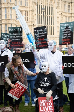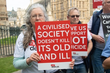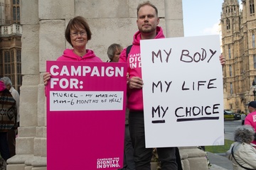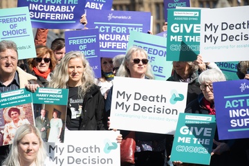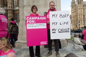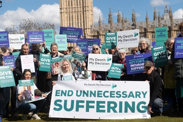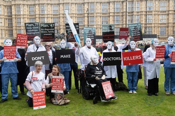 Debata na temat prawa dotyczącego wspomaganego umierania w Wielkiej Brytanii przed parlamentem gromadzi zwolennikow i przeciwnikow.