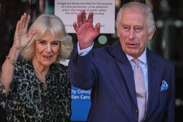 Król Karol wraca do obowiązków publicznych wraz z królową Camillą podczas wizyty w UCH Macmillan Cancer Centre w Londynie w Wielkiej Brytanii