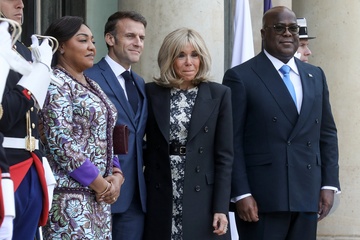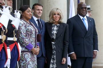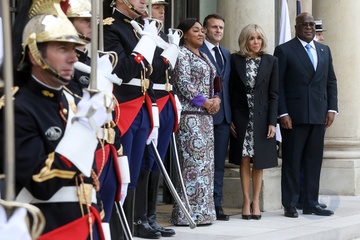Prezydent Emmanuel Macron i Pierwsza Dama Brigitte Macron przyjmują pezydenta Demokratycznej Republiki Konga Félixa Tshisekediego i Premier Denise Nyakeru Tshisekedi, na lunchu roboczym w Pałacu Elizejskim 14
