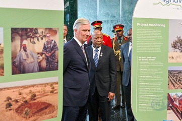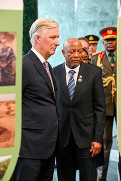 Le roi Philippe de Belgique en visite à l'exposition "Lignaverda" à Windhoek lors de son voyage de travail en Namibie