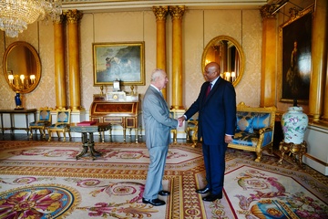 Król Karol III podczas audiencji u Letsie III, króla Lesotho w Pałacu Buckingham