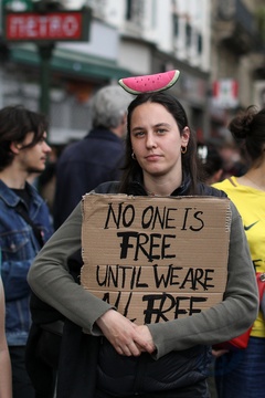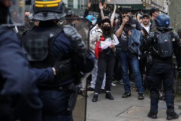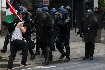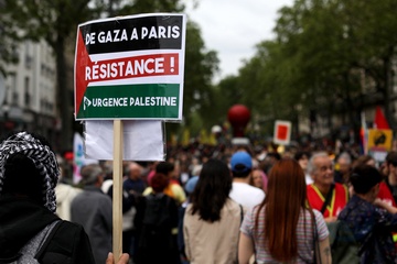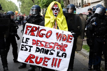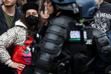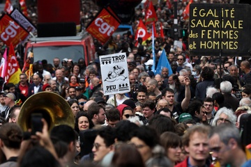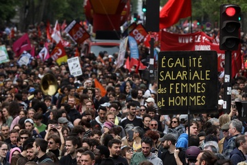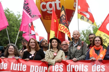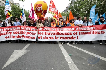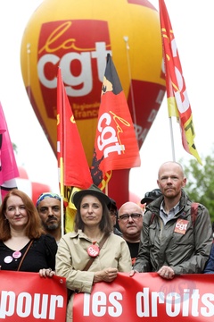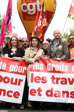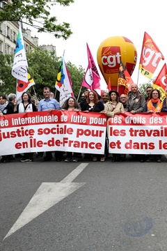 Manifestation unitaire des syndicats du 1er mai pour. la journée du travail à Paris (Sophie Binet Powszechna Konfederacja Pracy CGT – Politycznie związana z Francuską Partią Komunistyczną)