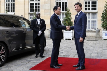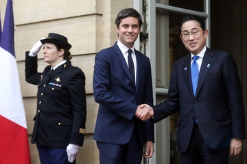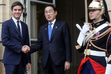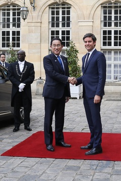 Le premier ministre Gabriel Attal reçoit Fumio Kishida, premier ministre du Japon, pour un entretien à Matignon (Gabriel Attal przyjmuje Fumio Kishida)