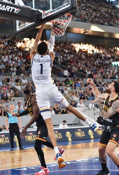 Finale du Championnat de France de basket-ball Elite Betclic à Roland Garros entre les Boulogne-Levallois Metropolitans 92 et Monaco sur le Court central Philippe Chatrier à Roland Garros
