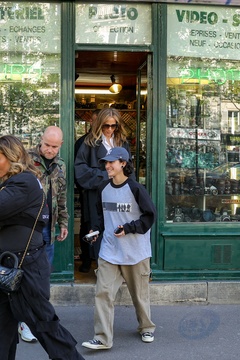 Jennifer Lopez et sa fille Emme vont faire un peu de shopping chez Euro-Photo un magasin de matériel de photographie à Paris