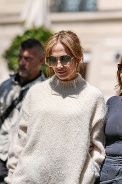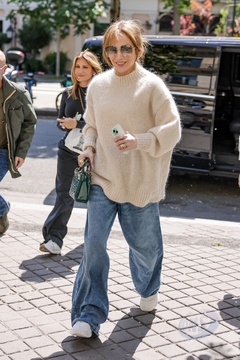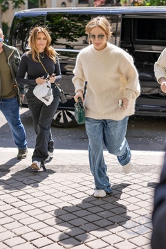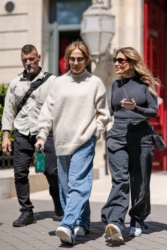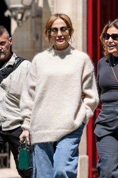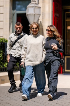 Jennifer Lopez sort et revient à l'hôtel La Réserve après avoir fait un saut dans une pharmacie à Paris