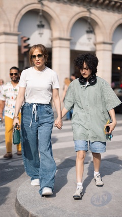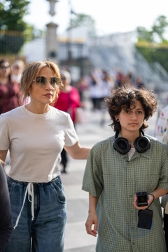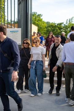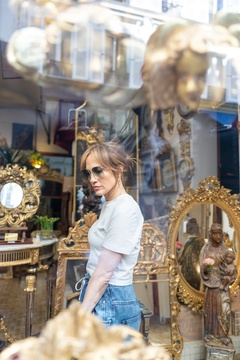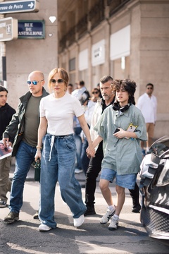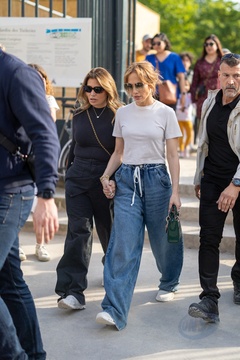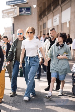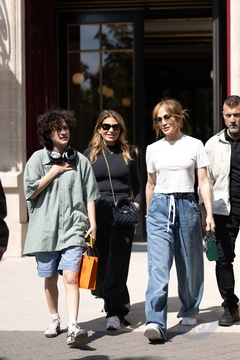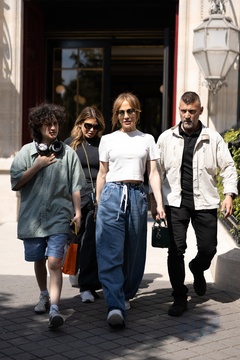 Exclusif - Jennifer Lopez sort de l'hôtel La Réserve pour aller dans un magasin de miroir renommé avant de profite des jardins parisiens avec Loren Ridinger, Benny Medina et sa fille, Emme à Paris