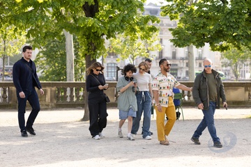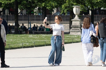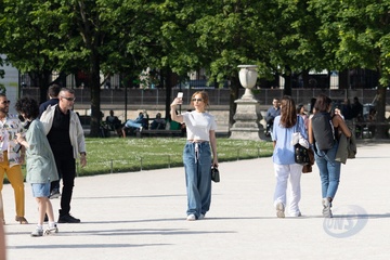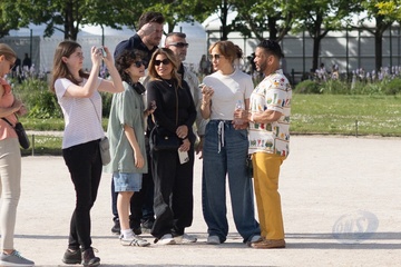Jennifer Lopez opuszcza hotel La Réserve, aby udać się do słynnego sklepu z lustrami, a następnie cieszyć się paryskimi ogrodami z Lorenem Ridingerem, Bennym Mediną i jej córką Emme w Paryżu 58