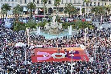 Charles Berling dernier porteur de la flamme olympique des JO de Paris 2024 dans le Var allume la vasque à Toulon (Charles Berling, ostatni niosący znicz olimpijski na Igrzyska Olimpijskie w Paryżu w 2024 r. w Var, zapala kocioł w Tulonie)