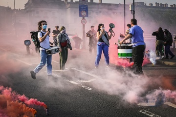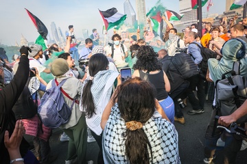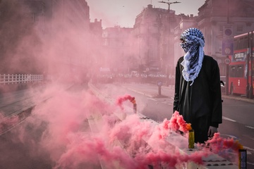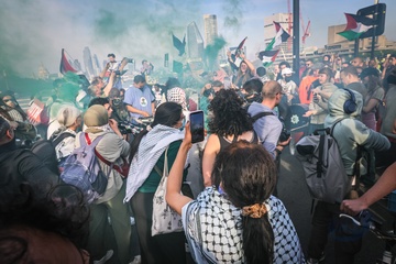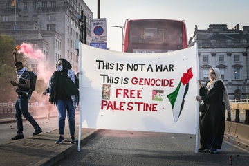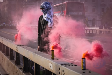 Waterloo Bridge blocked by Palestine Pritest, London, UK
