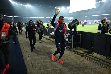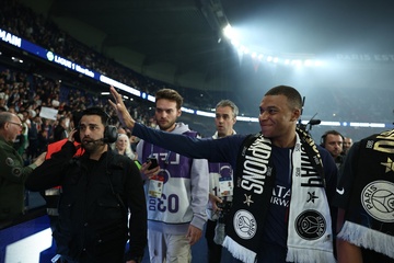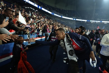 Dernier match de Kylian Mbappé avec le PSG en Ligue 1 Uber Eats lors de la rencontre "PSG-Toulouse" (1-3) au Parc des Princes à Paris