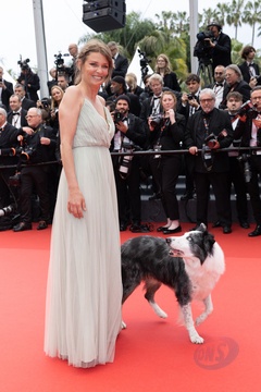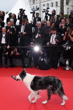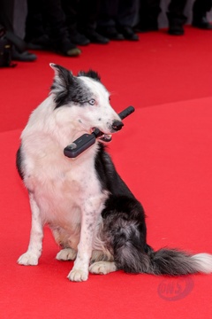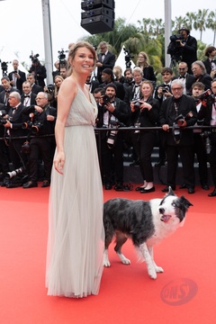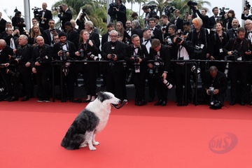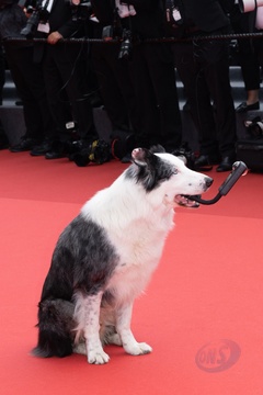 B - Le chien du film "Anatomie d'une chute" lors de la montée des marches du film « Le deuxième acte » pour la cérémonie d’ouverture du 77ème Festival International du Film de Cannes