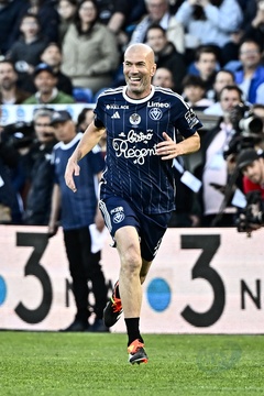 Zinedine Zidane participe au "Match des légendes" à l'occasion des 100 ans du stade Chaban Delmas de Bordeaux, autrefois Parc Lescure