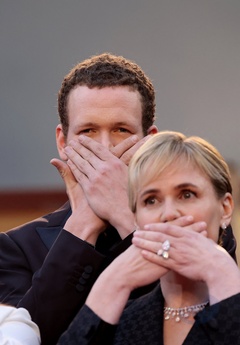 J - Montée des marches du film « Furiosa : A Mad Max Saga » lors du 77ème Festival International du Film de Cannes (Noé Boon et sa mère Judith Godrèche)