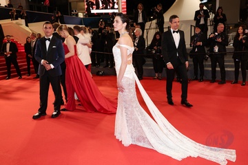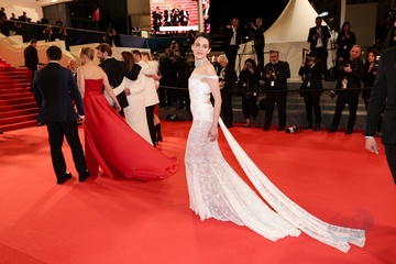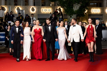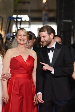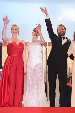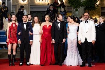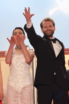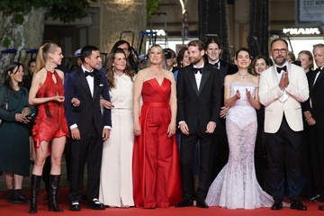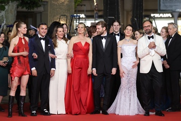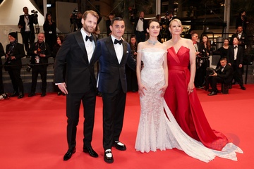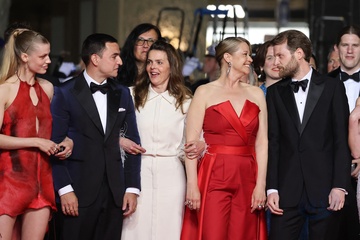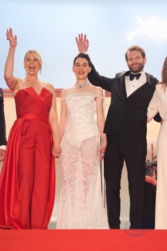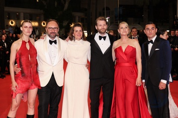 M - Montée des marches du film « The girl with the needle (La jeune femme à l'aiguille) » lors du 77ème Festival International du Film de Cannes (Tessa Hoder, Besir Zeciri, Trine Dyrholm, Malene Blenkov, Magnus von Horn, Vic Carmen Sonne, Mariusz Wlodarski)