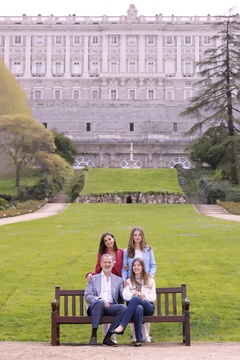 Le roi Felipe d'Espagne, la reine Letizia, leurs filles la princesse Leonor et la princesse Sofia posent à l'occasion de leur 20 ème anniversaire de mariage (księżniczka Leonor księżniczka Sofia)