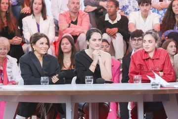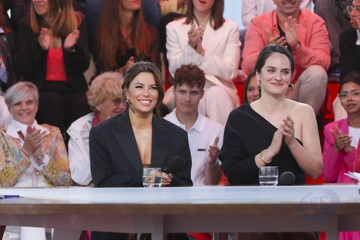 Exclusif - Plateau de l'émission "C à vous" lors du 77ème Festival International du Film de Cannes (Eva Longoria, Noémie Merlant)