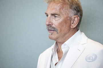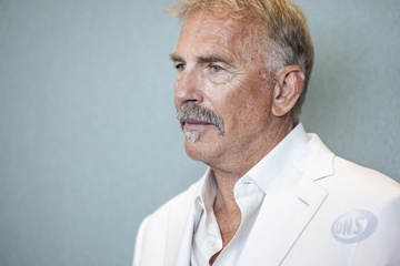 Kevin Costner pozuje podczas dekoracji medalu Orderu Sztuki i Literatury podczas 77. Międzynarodowego Festiwalu Filmowego w Cannes