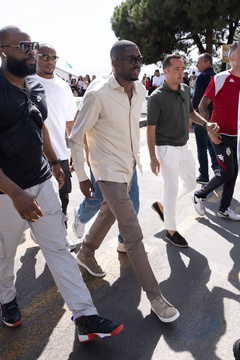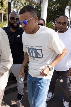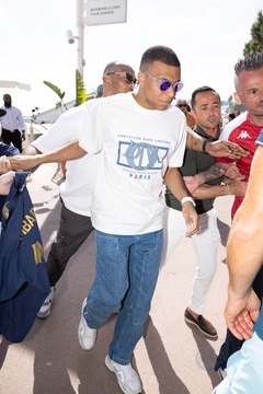 Kylian Mbappe i Ousmane Dembele opuszczają plażę La Môme podczas 77. Międzynarodowego Festiwalu Filmowego w Cannes
