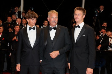 J - Descente des marches du film « Horizon : An american saga » lors du 77ème Festival International du Film de Cannes (Kevin Costner synowie Hayes i Cayden Wyatt)